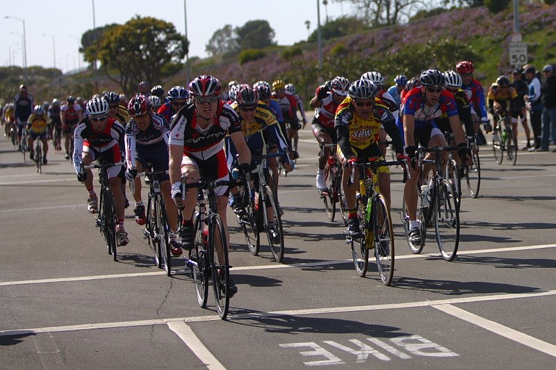 It became very apparent that sitting in was more important than trying to be a hero. So I sat in until the last turn and then the sprint was on. We came out of the corner at almost full throttle with at least a mile to go to the finish line. I sensed the move coming from my left and chased after it. Well he tried to get into the train and they didn’t let him in. As he tried to enter the train he cut my buddy off which threw off my line, then he cut me off, which threw off my line again and by that time he had created a gap. I hesitated whether I should chase or if I should just wait until someone bridged the gap and follow the wheels to the 200 meter line. Well other riders did come up and I was swallowed up. I had to fight for 12Th place.