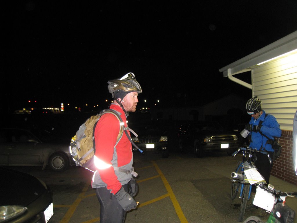 This was not the first time we were off course that night or that day for that matter. But there is that one time in every race you remember the most and this was it. Finally, I said let’s find food (I was starving AGAIN) and then we’ll figure it out. Lo and behold when we pull into to a gas station in Toledo (I think) there are three (I think) other riders one of which is Ben Shockey.