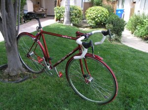 I began my search for a steel fixie with road geometry and horizontal dropouts. I found a shop named Ben’s Cycle and Fitness in Milwaukee. They sold/sell a bike made by Waterford called the Milwaukee Bicycle Co.