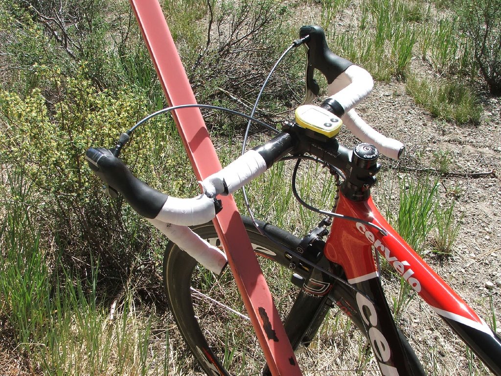 HERE IS AN EXAMPLE OF THE MACHINE NOT BEING ABLE TO BE JERRY-RIGGED BROKEN CARBON HANDLEBARS FROM CRASHING INTO A SNOW STAKE 10 DAYS BEFORE RAAM 2007 ON THE EASTERN SIERRA DOUBLE CENTURY ABOUT 70 MILES IN I FELL ASLEEP AND RAN OFF THE ROAD. SINCE THAT INCIDENT ALL NEW BIKE BUILDS HAVE ALLOY HANDLEBARS.