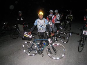 Then your conscious mind takes over and you become rational. You pull over and think if I can just take a 10 minute power nap I will be ready to go. I don’t know if this happens to you but as soon as I pull over and dismount I’m WIDE awake and there is no way I can catch a nap. So I get back on the bike and start the cycle over. This cycle repeats itself for hours and hours. For me this weakness manifiests itself between the hours of 2am and 5am. No amount of caffiene, sugar or calistenics (yes I’ve done them and push-ups) on the side of the road helps. Some overnighters are better than others but at varying levels I experience all aforementioned “symptoms” of sleep deprivation.