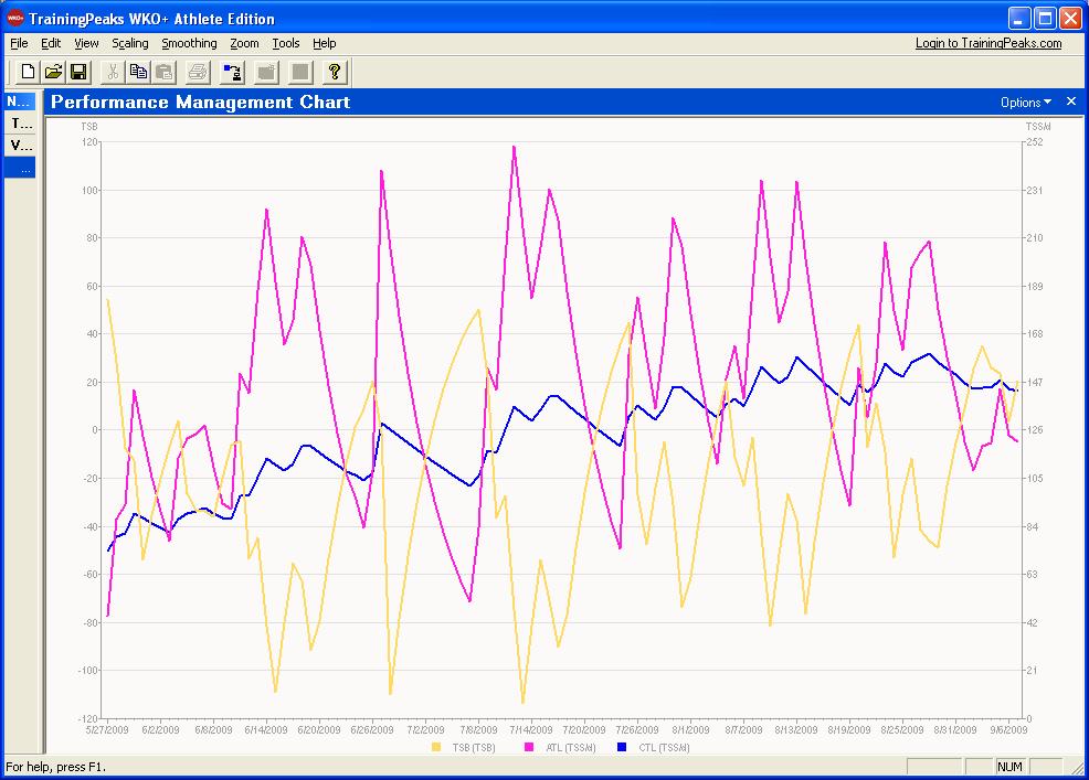 What you see below is the Performance Management Chart from Training Peaks Software.
