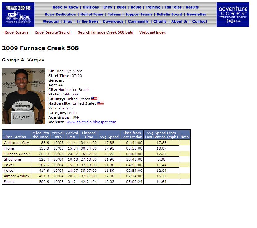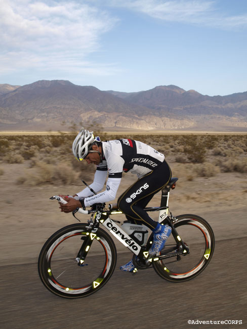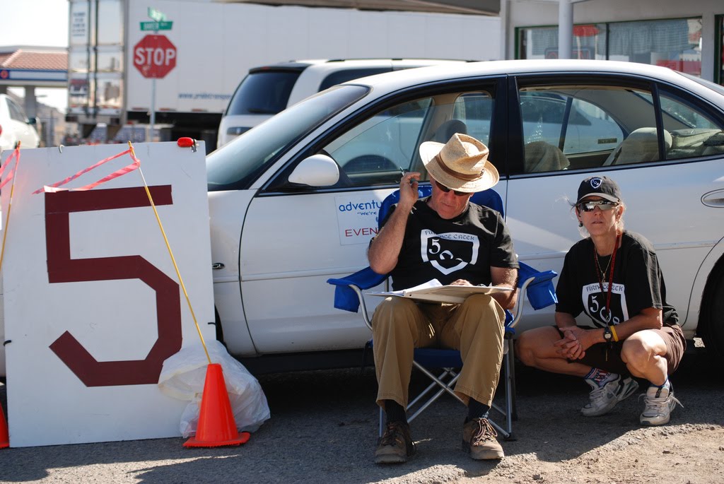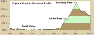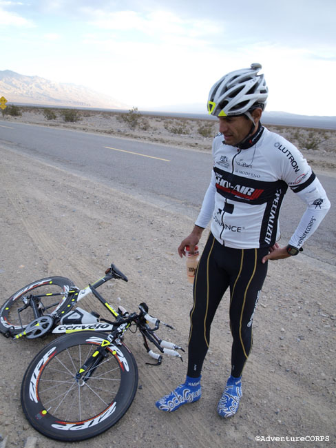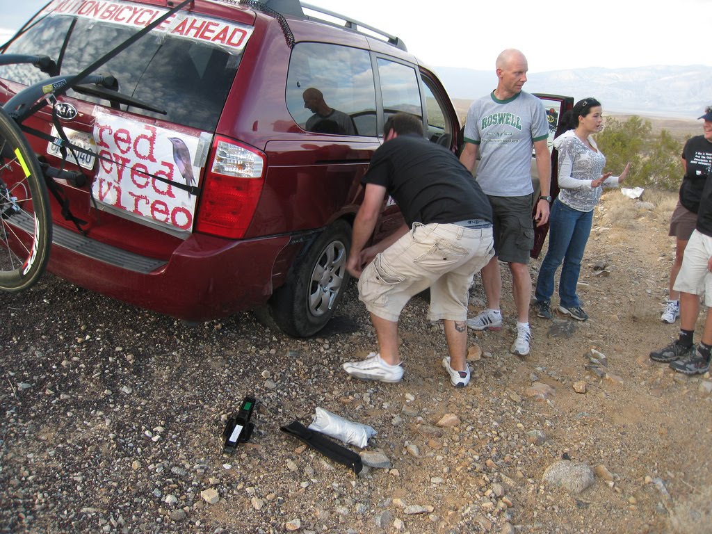 At Furnace Creek Time Station I spent a few minutes chatting with Blackbird and eating a turkey sandwich. We talked about the wind conditions and the time splits of other racers. My crew meanwhile filled the space saver spare tire with air. The tire blowout, the flat spare and the damage to the rental vehicle concerned me way too much. I eventually was able to shut it out but I do remember ruminating over it far too much.