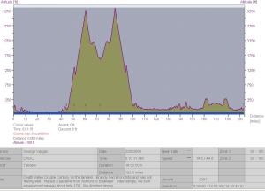 We are now more than 45 minutes behind the last rider. It is only 1.5 miles into the brevet. Mentally, I’m going through the scenarios of how late tonight we will finsh. Also my goal was to get to the base of Hwy 67 (about 60 miles with about 4,500 ft) before it got too hot. It is a long slog of a climb from Lakeside to Ramona and then to Santa Ysabel. It is 30 miles of up and up with rollers ( see graph above) but basically it climbs up to 3,000 feet from below 500ft. I even considered calling it a day since the day was not off to a good start.