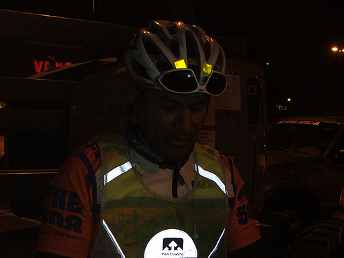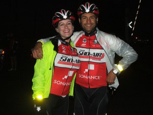 I chose my Serotta again. I think the fit is dialed in now. I rode my Powertap powermeter which is built on Velocity Deep V rim. They are very sturdy very stiff and very reliable. I have them laced 24H and have never had them go out of true. Tires of course were Kenda C2Cs. For lights I carried two small headlights powered by “AA” batteries and a tail light.
