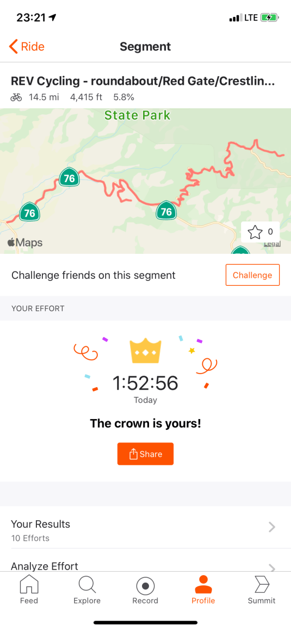 Seven repeats of an 11.6 mile climb turned out to just be too much by repeat number 7. The 7th repeat took twice as long as the previous 6 repeats – from an average of 2 hours to over 4 hours.