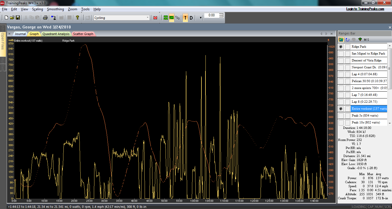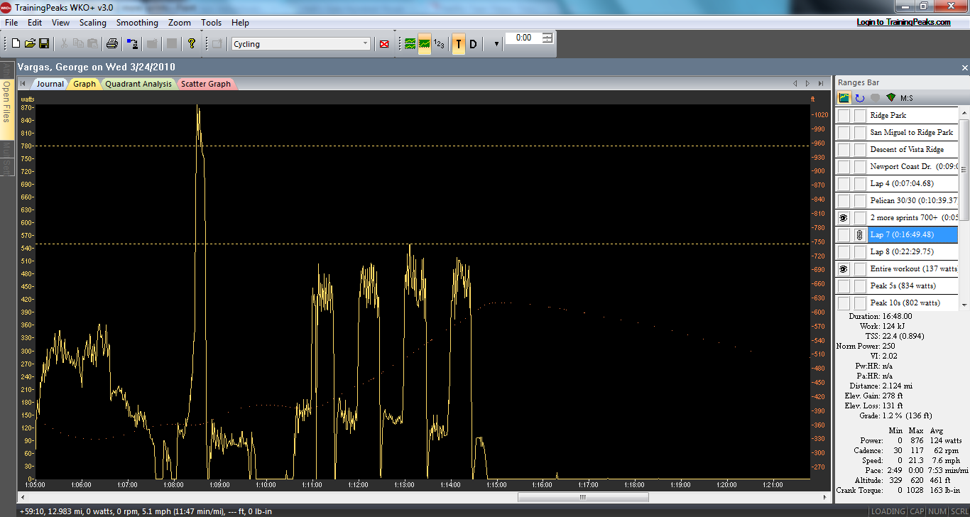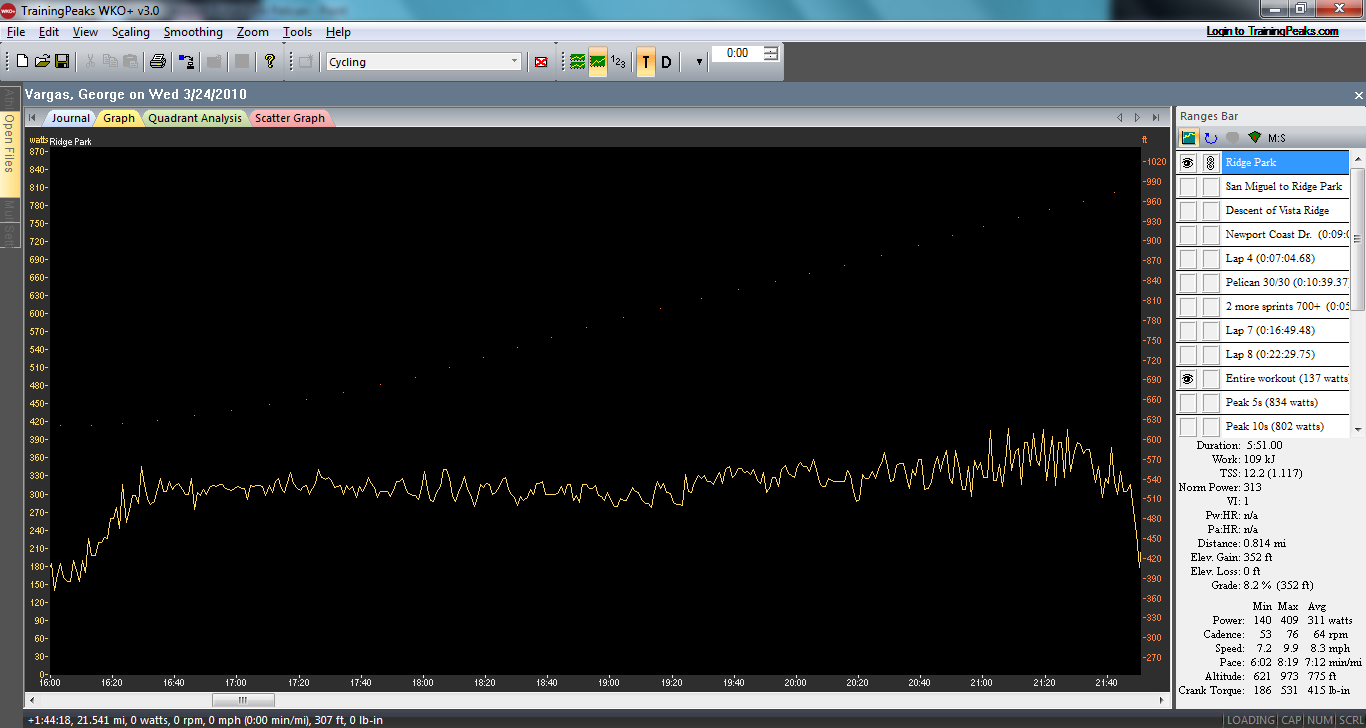 I spent Thursday afternoon (010512) in the Crestline area visiting a friend. I began my ride in Crestline and descended down Hwy 18 to San Bernadino. I then climbed about 2 miles on Hwy 18 until I turned right onto Old Waterman Canyon Rd. I had a really hard day of climbing. I never felt like I got in my groove.