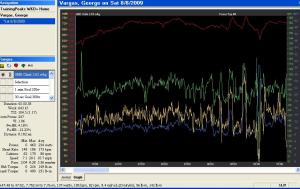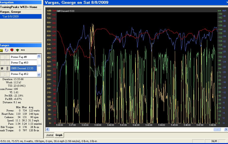 I was still grinding way too much and the 12% grades had me standing way too much to keep my momentum up. Notice the grey line on the power chart goes up as the power goes down. That grey line is torque and it really shoots up when the grade is steep. You’ll notice my power and cadence go in the opposite direction — as in down! Next time I climb Onion Valley Rd I will take an 11-27 cassette and see if I can improve the average cadence and average power by spinning a little more.