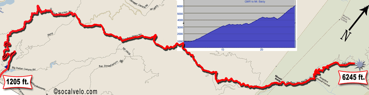 Graph of Glendora Mountain Rd. to the Ski Lifts on Mount Baldy