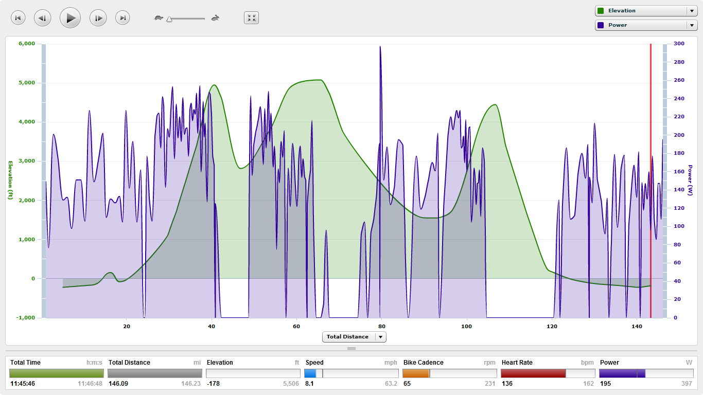 Final Stats — 147 miles with 13,500 feet of climbing. 13,000 in the first hundred.