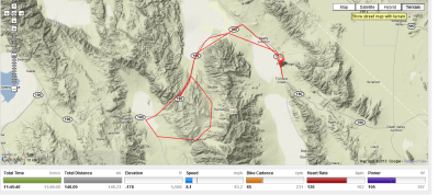 Having finished that race and survived 60 mph headwinds any other headwinds just aren’t that bad.. Nonetheless, these winds were bad and they were kicking my ass. I later found out they were blowing steady over 22 mph with gusts in the 30’s. I was tired and hungry and racing to reach Furnace Creek before 9pm because that is when the restaurants close. I didnt make it. I was averaging 9 mph just trying to keep the bike moving. Which of course is better than 7 mph from the 2009 FC 508. Going that slow it is easy to get blown off the road and that’s what happened a couple of times. Notice how slow I’m going the last 6 miles — 8-9 mph!