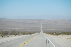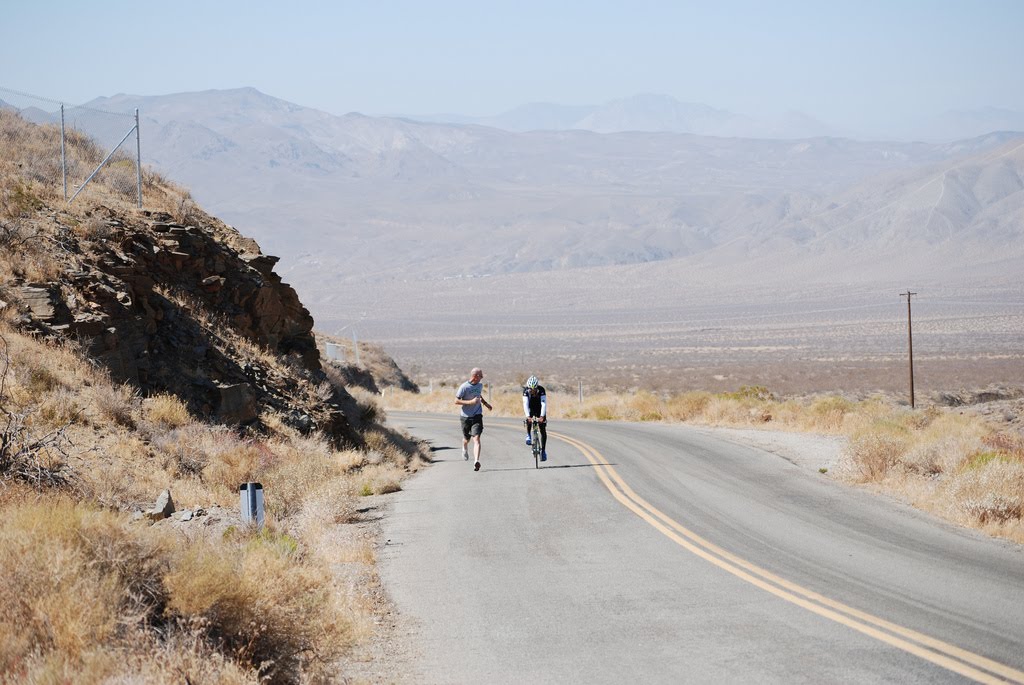 However, Mr Murphy, of Murphy’s law fame, had other ideas. My crew vehicle had a blow-out on the descent off the Trona Bump. Luckily it wasn’t in the twisty part but it still must have been scary for them. So here I am down the road quite a bit looking behind me for my crew and I don’t see them. Nevertheless, I kept the pace medium to high maximizing the terrain and the tailwind to my advantage. After some time another crew vehicle pulls alongside me and offers me a bottle. They tell me what has happened to my crew and give me a bottle to help sustain me until my crew is up and running.