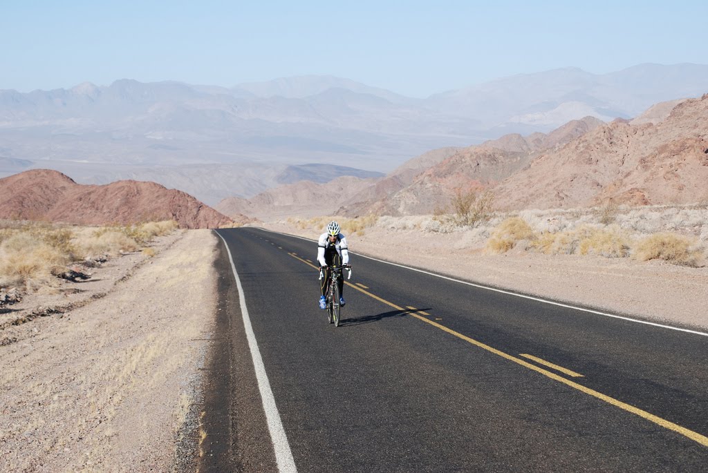 I left the Furnace Creek Time Station knowing that I would face headwinds as I went south through Death Valley but I had no idea how ridiculous they would be. The winds were blowing a steady 25-35 mph and gusting up to 70 mph. I can’t express to you how humiliating it felt to be riding at 7-8 mph into those headwinds. I pushed the pedals hard and got nowhere. I eased up on the pedals and felt like I was going backwards. I couldn’t get in my aero bars because I was being tossed around like laundry on a clothesline.