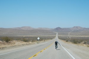 The decision was made by Brandy, my crew chief, to roll on ahead and leave me unsupported. I like the comfort and security of having the support vehicle directly behind me through this section because the big rigs and pick-up trucks towing their “toy haulers” often buzz me way too close. My crew chief stocked me with food, No-Doz and flat repair and they went on to Baker. Good thing they left when they did since the tire shop was closing when they arrived. The proprietor was gracious enough to stay open after-hours and sell my crew a new tire.