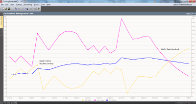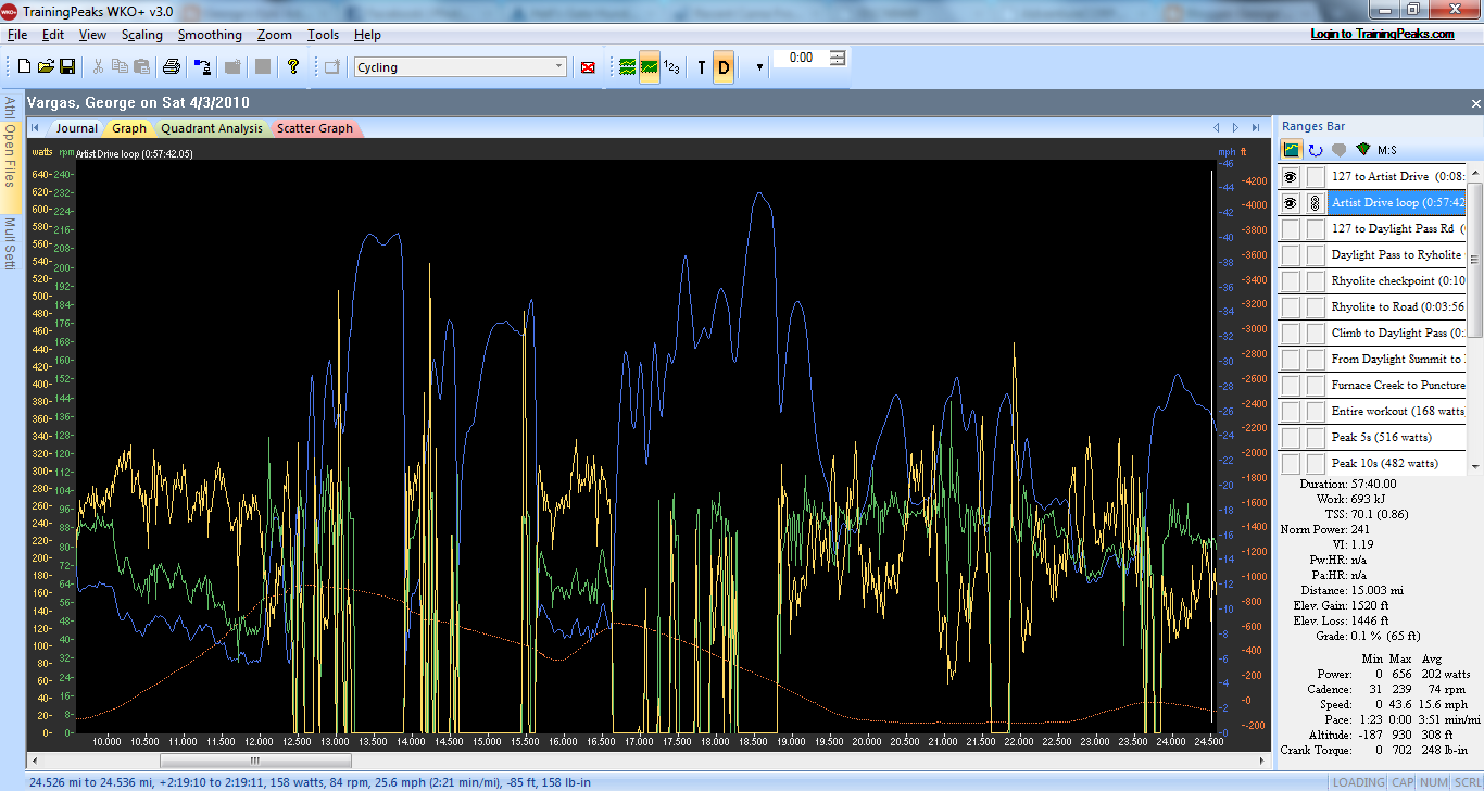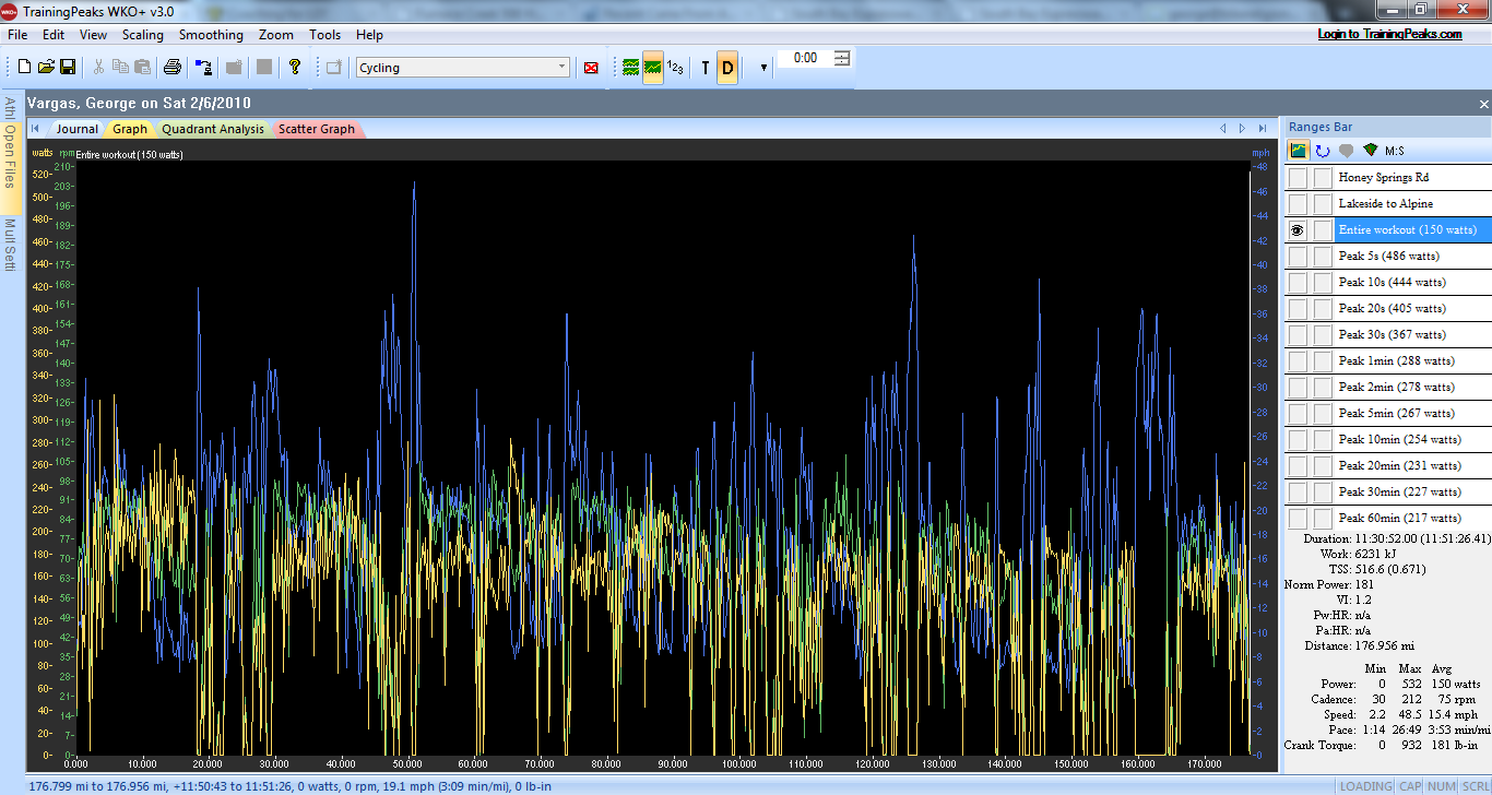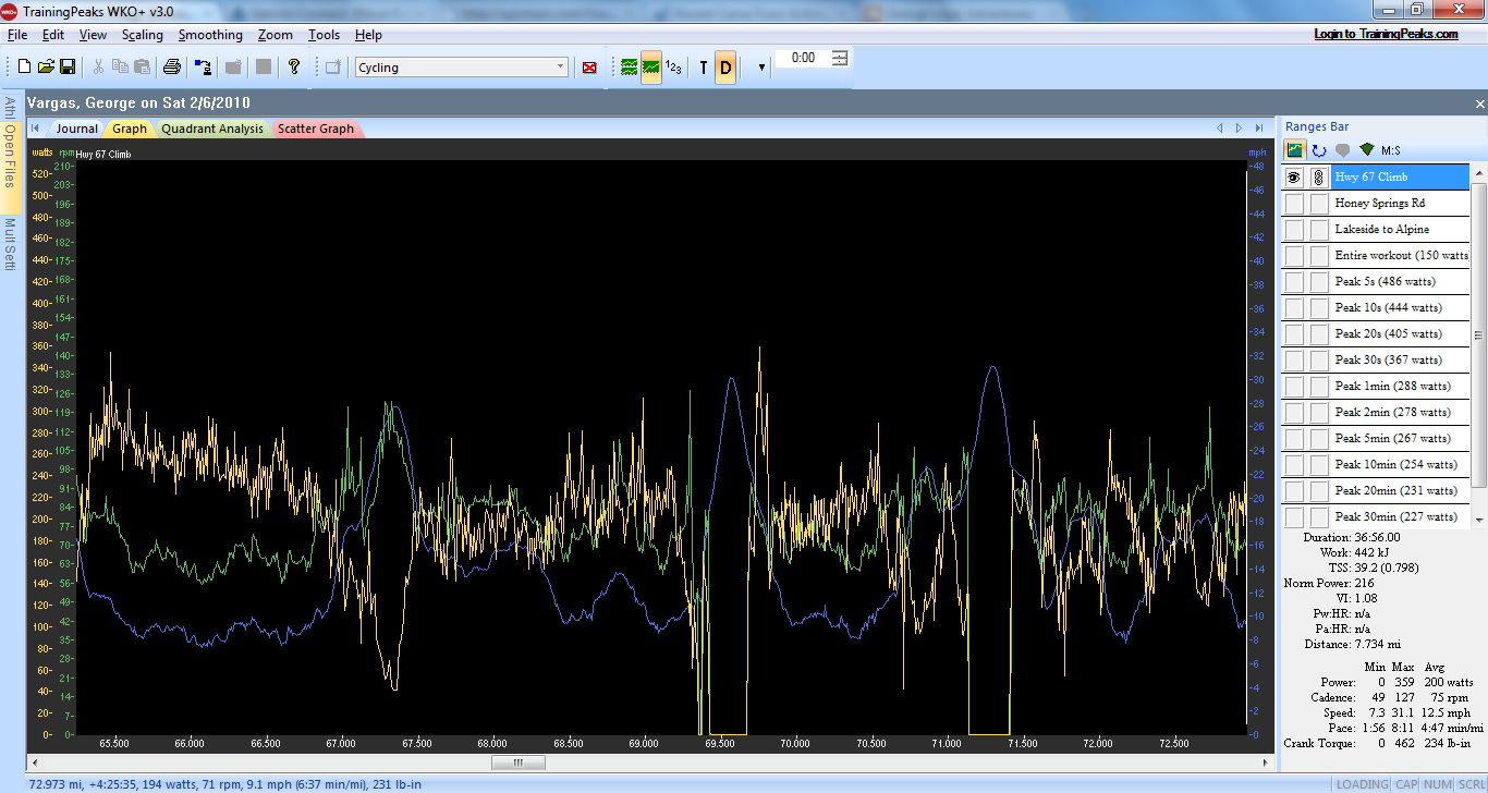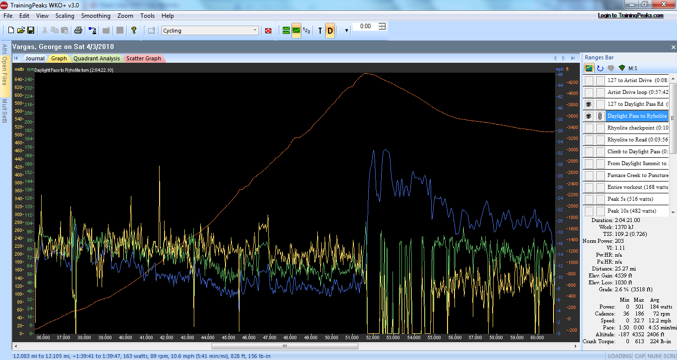 The graph above is from Training Peaks 3.0. It shows only the timed portion of the event.