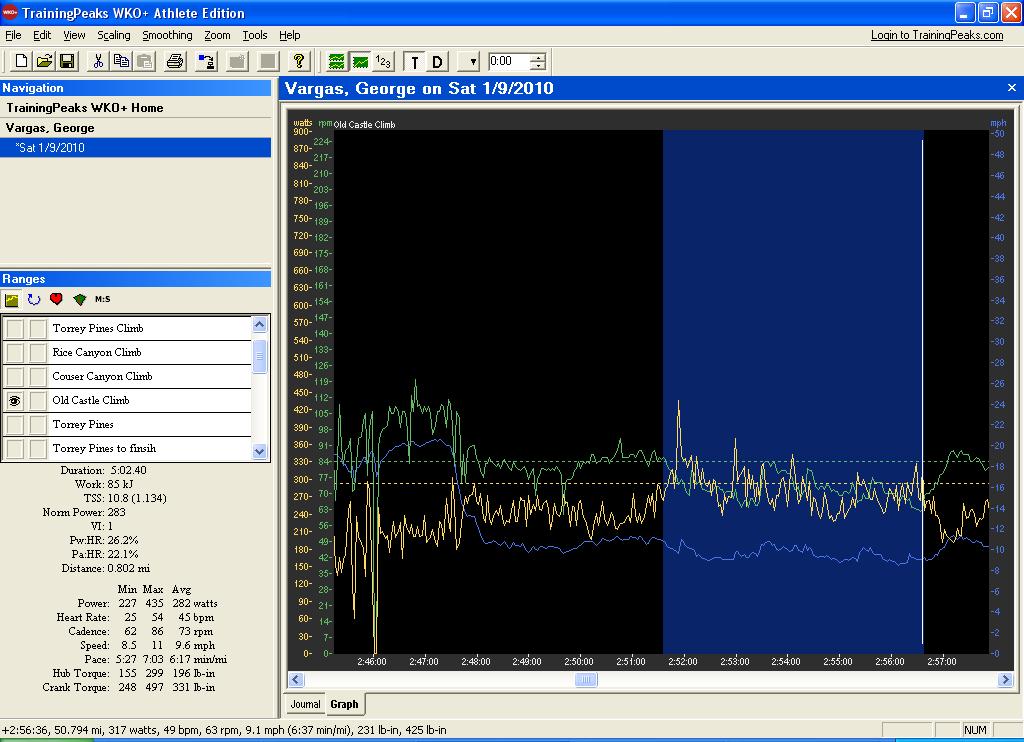 BIKE SETUP— Cervelo Soloist SL with Orion II Power Tap wheelset, no aero bars. Chainrings 53/39 Cassette 11/23, two water bottles