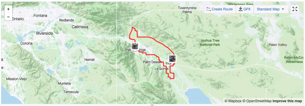 If you are ever in Southern California in February give this century a go. Escape the cold, rain or even snowbound climates for our deserts. The event is well supported. There are police officers stationed at all the major intersections and you get the right of way. It’s as flat as any Southern California century can ever be.